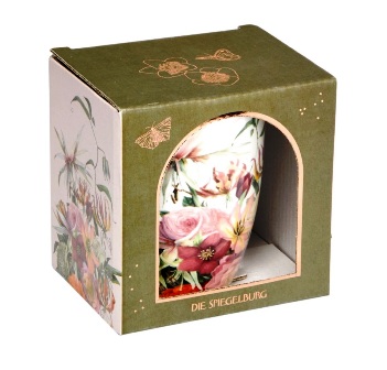 Taza de porcelana roja con bano de oro - La mágia de las flores